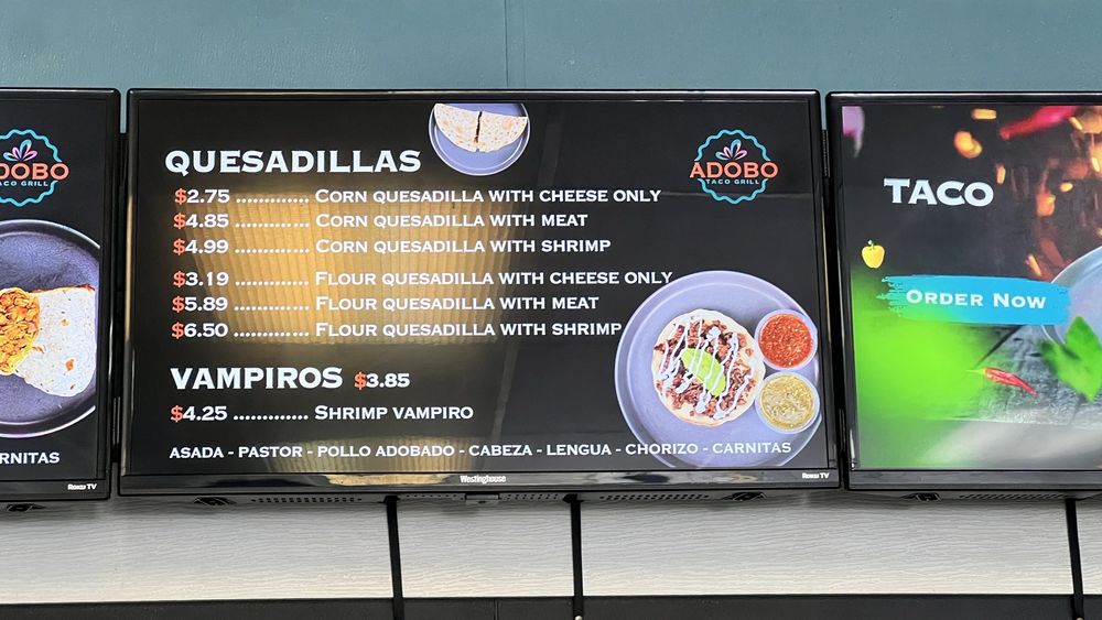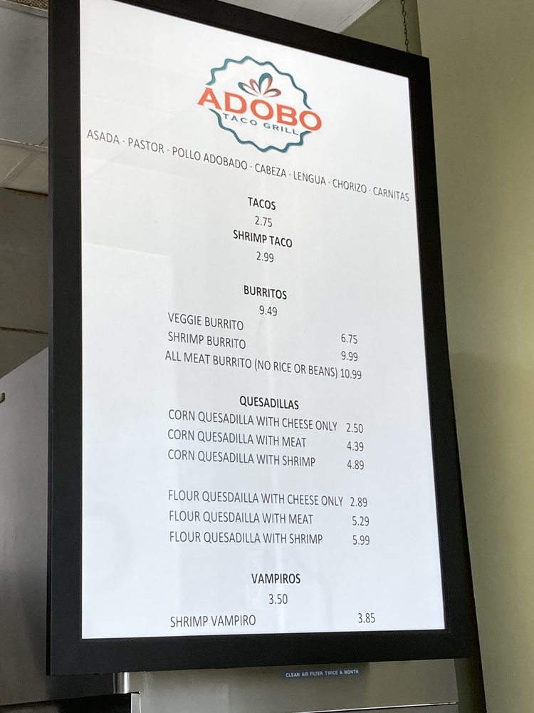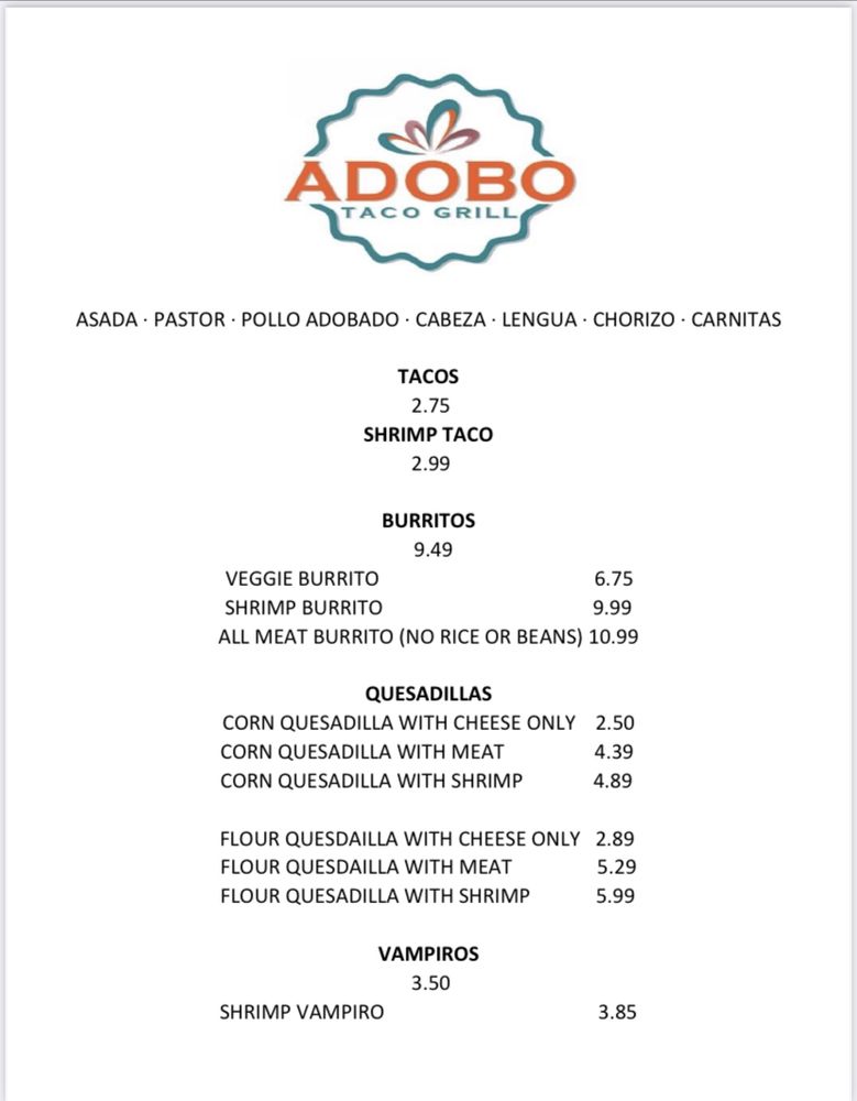 Experience the vibrant flavors of Mexico at Adobo Taco Grill, located in Lakewood, CA. This casual dining spot offers a variety of authentic dishes such as quesadillas, vampiros, and tacos. Standout items include the corn and flour quesadillas with a choice of cheese, meat, or shrimp, as well as the flavorful vampiros with options like asada, pastor, and shrimp. The tacos, including shrimp tacos, are a must-try for taco enthusiasts. With positive reviews praising the food quality, service, and ambiance, Adobo Taco Grill is a hidden gem for Mexican food lovers. Don't miss out on the delicious burritos, salsa bar, and friendly staff. Visit this gem and savor the best of Mexican cuisine in a welcoming setting.